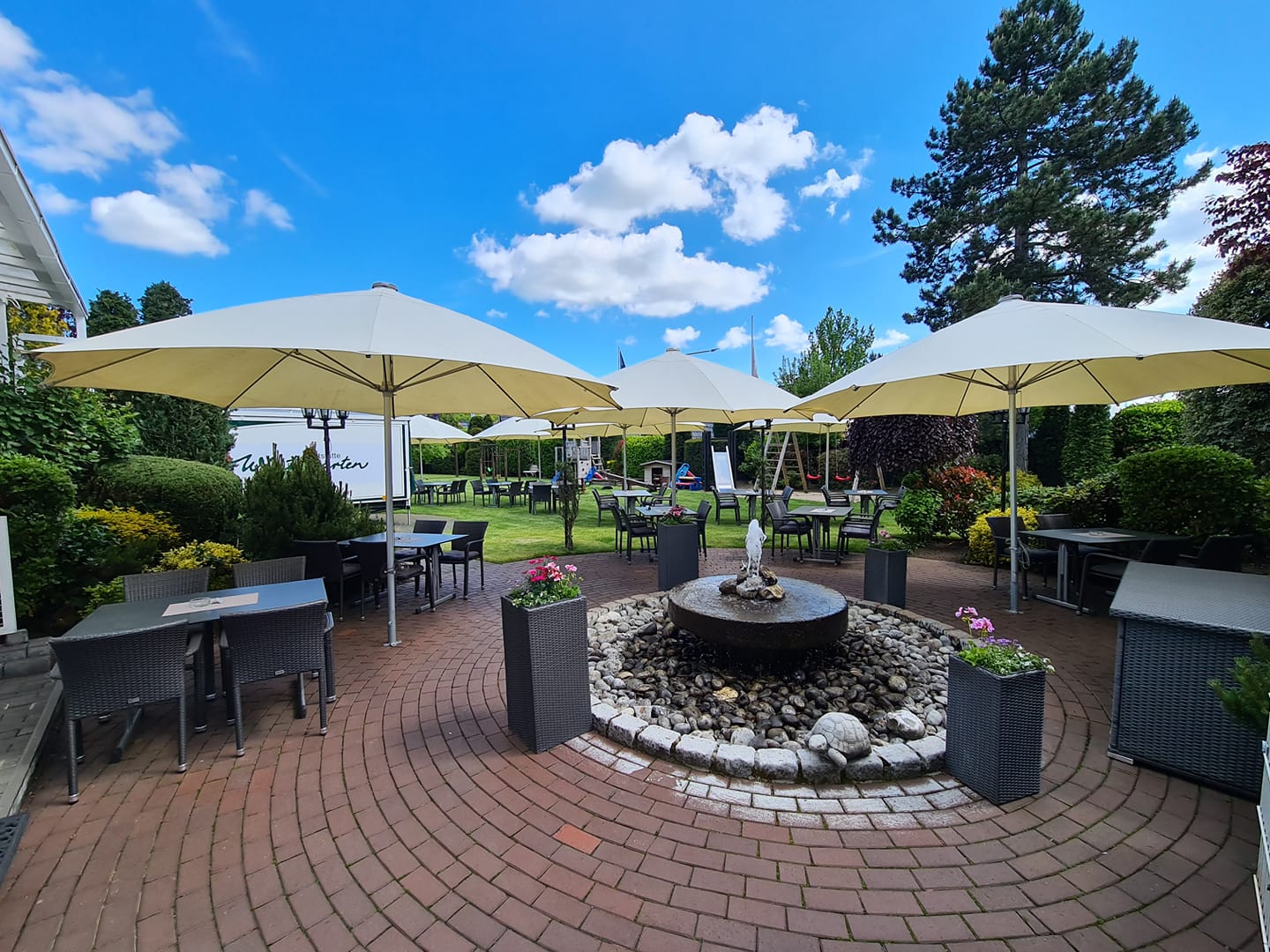 Flyer herunterladenDer Biergarten umfasst eine Größe von ca. 1500 qm. Die Gartentische lassen sich zu beliebigen Tischformen anordnen. Auch ihre Familie bzw. Kinder kommen nicht zu kurz. Während die Kleinen sich auf dem hauseigenen Kinderspielplatz die Zeit vertreiben, können Sie die Gartenatmosphäre genießen. Wählen Sie Mittags und Abends ihr Gericht aus unserer Speisenkarte und lassen Sie sich von unserem Service bedienen.